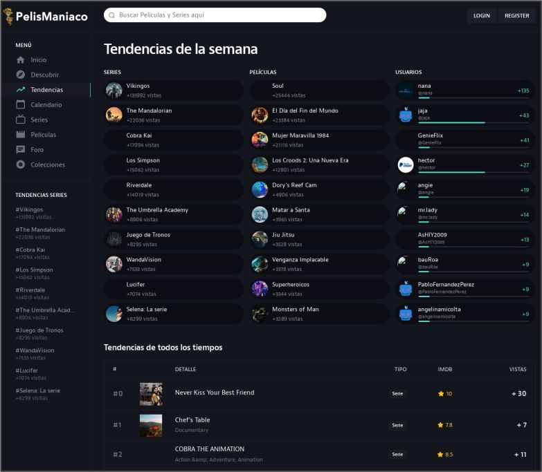Desarrollé la página web Pelismania.co utilizando Vue.js y el framework Nuxt.js para la parte del front-end. La página obtiene todos sus datos desde un sitio de WordPress a través de la API REST del mismo. Durante el desarrollo, implementé una arquitectura basada en componentes para mejorar la reutilización de código y la escalabilidad de la aplicación.